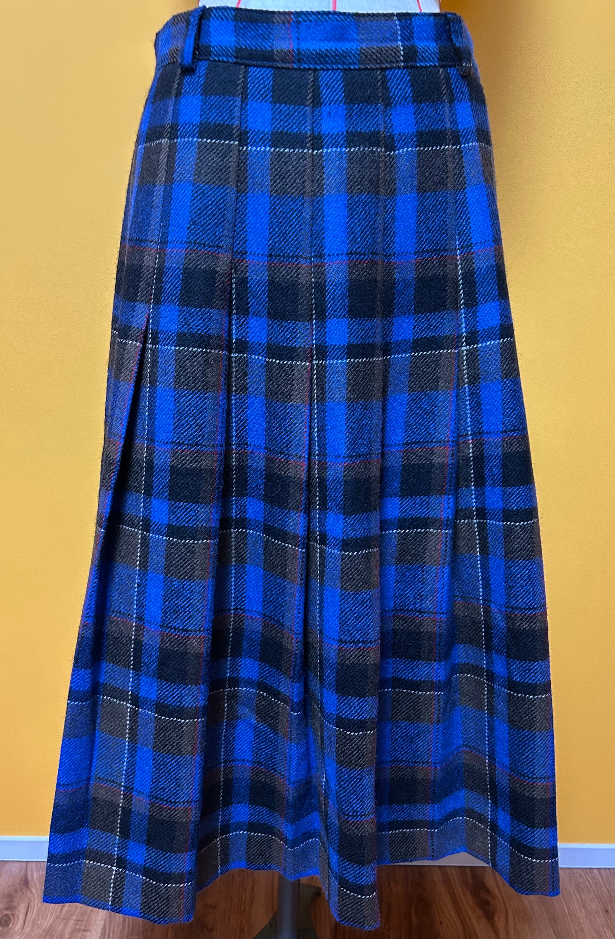 プリーツ ウール スカート skirt チェック ブルー ブラウン イタリア製 古着《181》